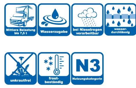 - Fläche nach 24 Stunden begehbar, nach 7 Tagen befahrbar (bei +20°C Temperatur und 65 % rLF)